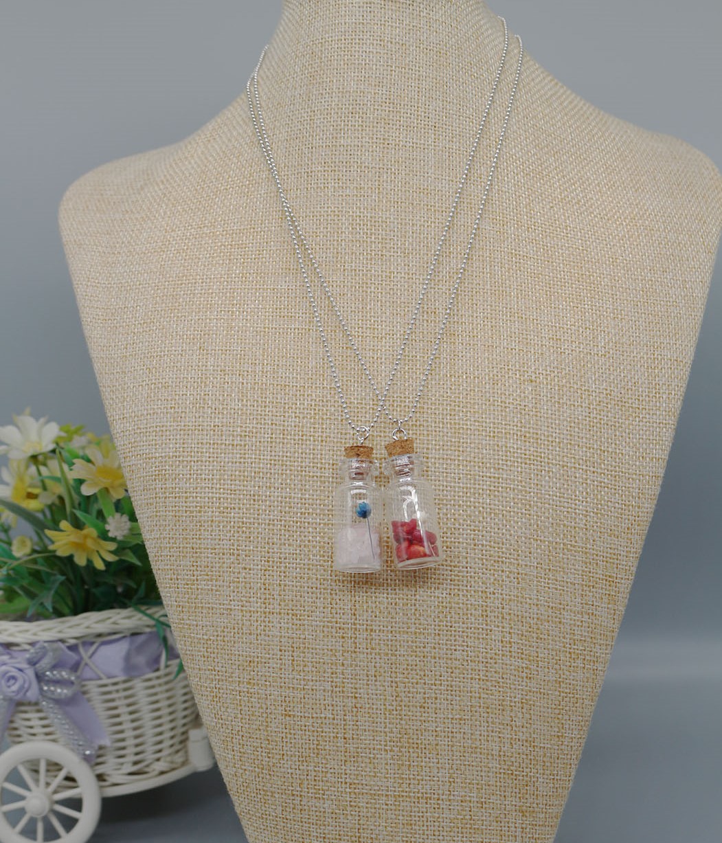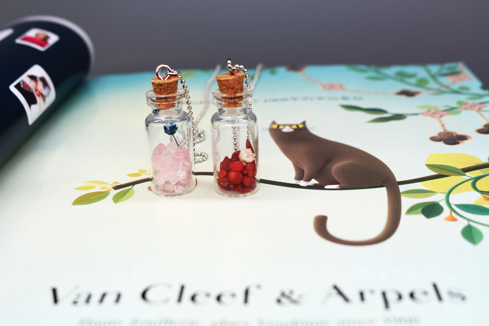 Glass vials with hay/small stones Pendant necklace Simple elegant