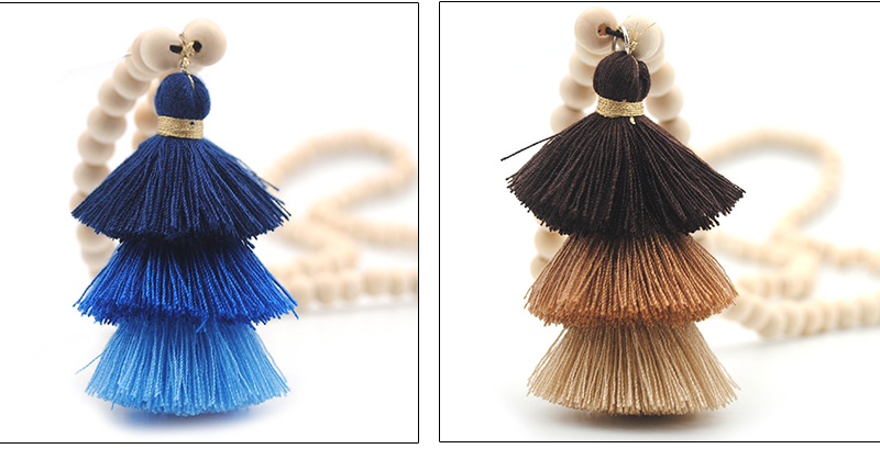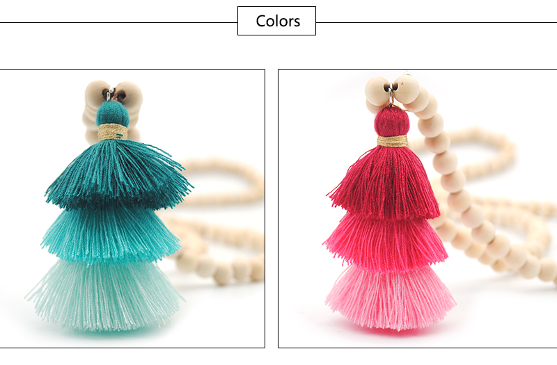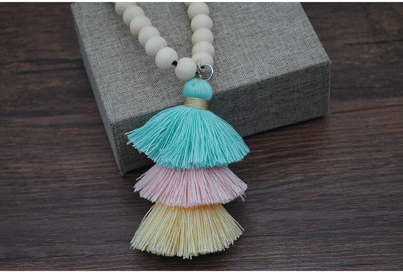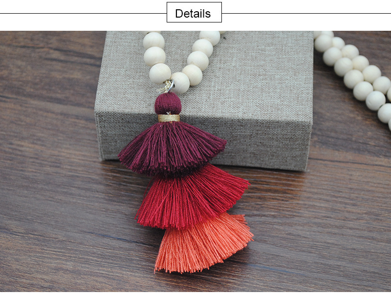 Tassel Necklace Festival Natural Ivory White Wood Beaded