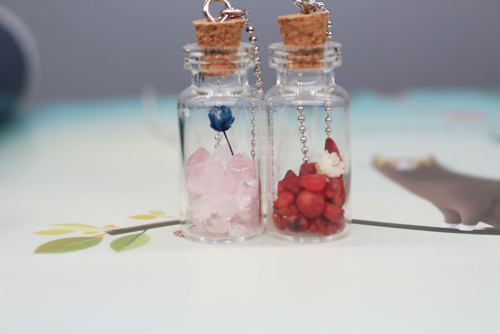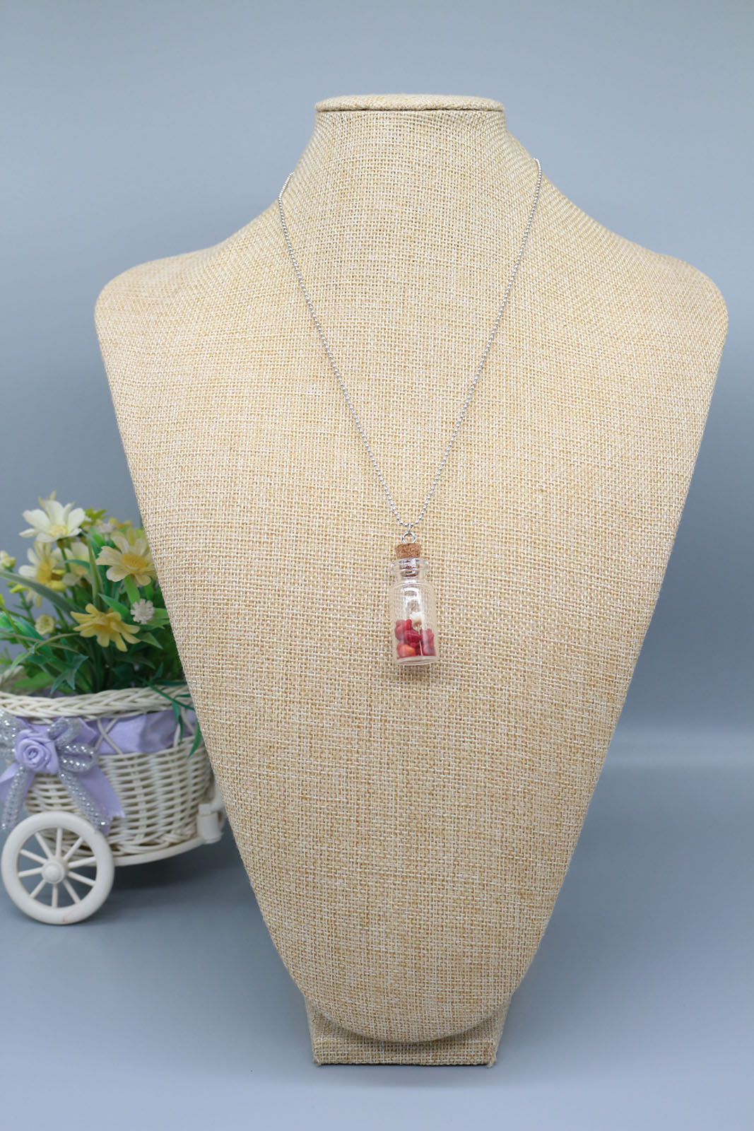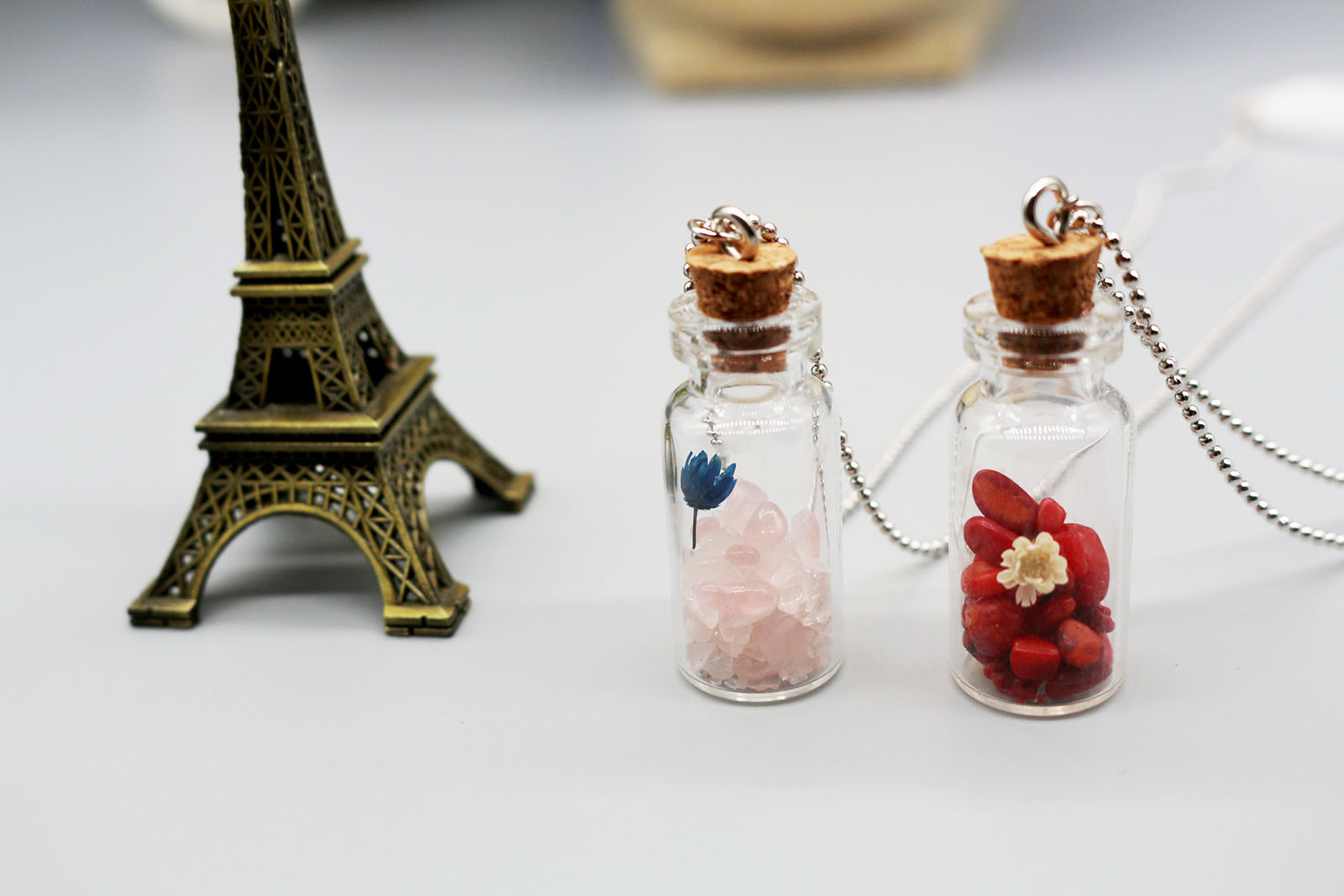 Glass vials with hay/small stones Pendant necklace Simple elegant