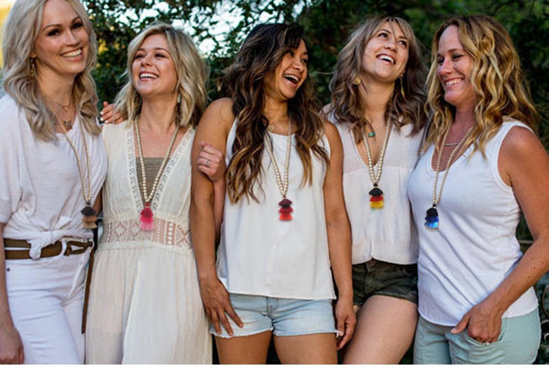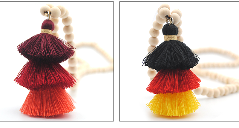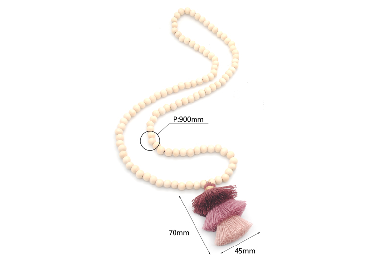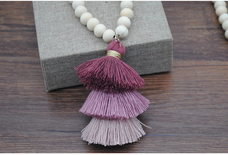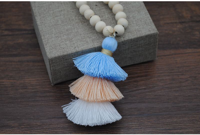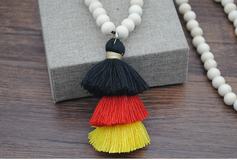 Tassel Necklace Festival Natural Ivory White Wood Beaded